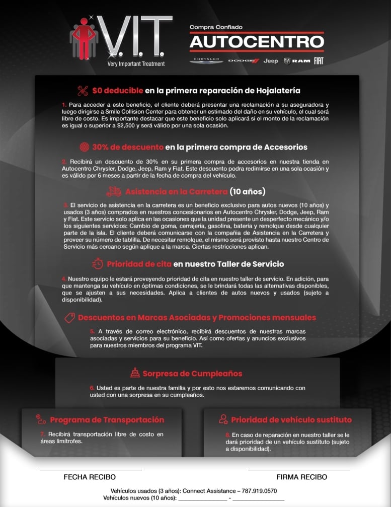 2) Garantía de por Vida aplica a todas las unidades nuevas con excepción de unidades con motor supercharger, productos SRT, TRX y vehículos comerciales.