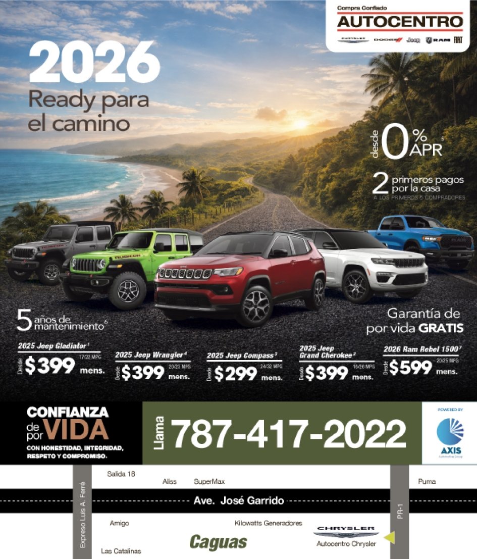 Pagos no incluyen seguros, tablillas, ni ACAA. Licencia y gastos de registro varían. $0 pronto, sujeto a aprobación de crédito y parámetros establecidos por la entidad de financiamiento. $0 Pronto. $0 deducible en hojalatería en estimados que sobrepasen los $2,500 por Smile Collision Center. Ninguna oferta puede ser combinada. Ofertas sujetas a contrato de servicio. Todos los financiamientos y ofertas están sujetos a aprobación de crédito en adición a parámetros establecidos por la entidad de financiamiento. Unidades anunciadas son sujeto a disponibilidad de inventario. Ninguna oferta puede ser combinada con otras, ciertas restricciones aplican. Algunos modelos podrían no ser igual al ilustrado. Ciertas restricciones aplican. Sujeto a aprobación de crédito. Ofertas válidas hasta el 15 de enero de 2026 o mientras duren.
